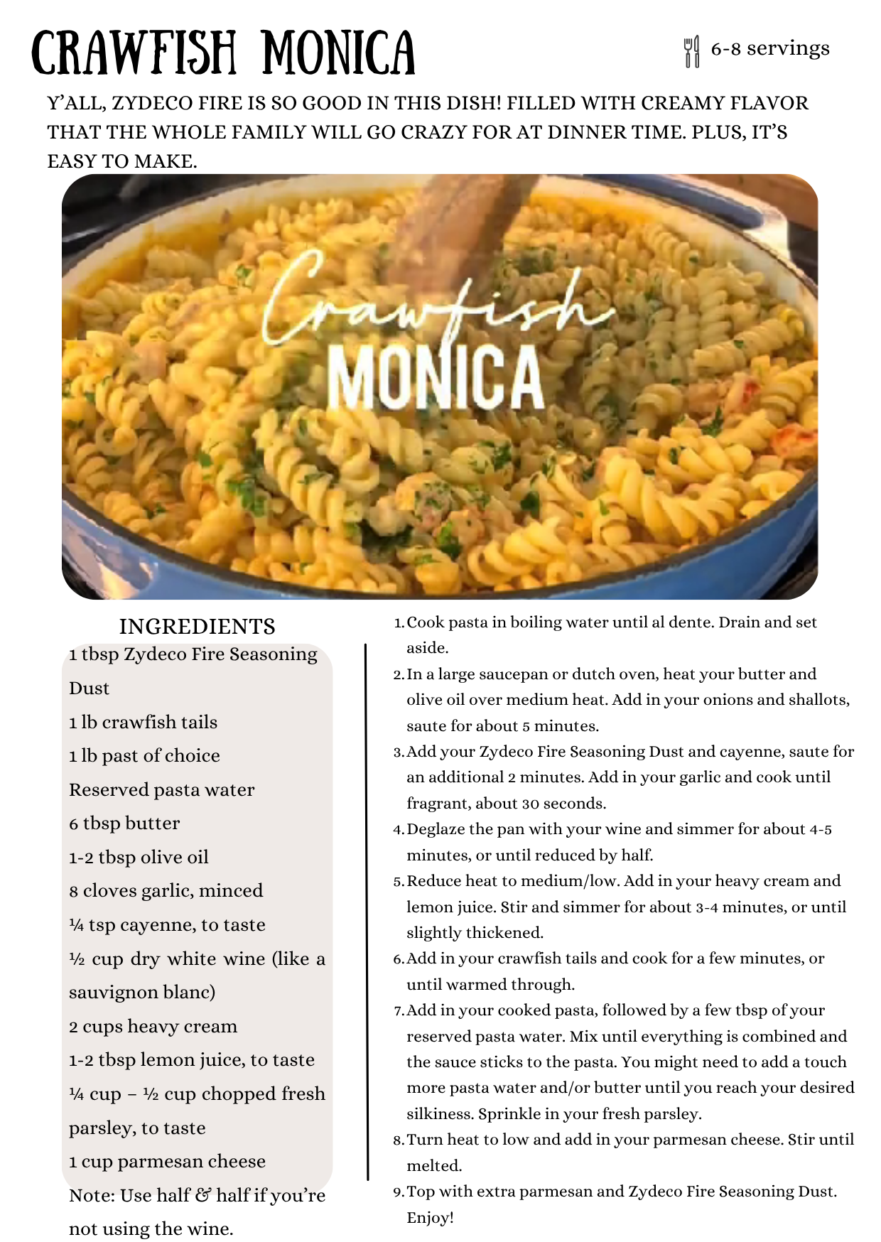 Crawfish Monica Recipe Apr 9 Written By Tara Robinson Y’all, we had to share this recipe that we’re sure will be a hit at your house too! Tara Robinson